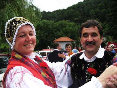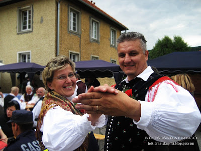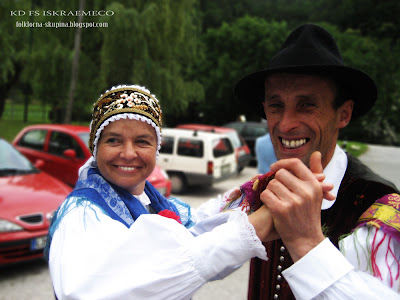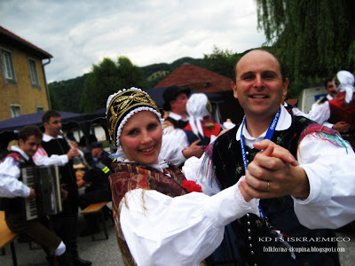 Folklorna skupina Iskraemeco 40+ se je na odru dobro znašla, slišati je bilo vriskanje in veselo topotanje nog. In ker smo se v osmih minutah na odru ravno dobro ogreli smo za svojo dušo zaplesali še na dvorišču pred kulturnim domom in navdušili vse, ki so še čakali na svoj nastop.