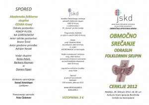 Območno srečanje – Cerklje 2012 26. februarja 201229. september 2017 Jure Florjančič Območno srečanje odraslih folklornih skupin, ki bo 26. februarja 2012 v Kulturnem hramu Ignacija Borštnika v Cerkljah. Se vidimo! Continue reading... območno srečanje 2012, območno srečanje, revija