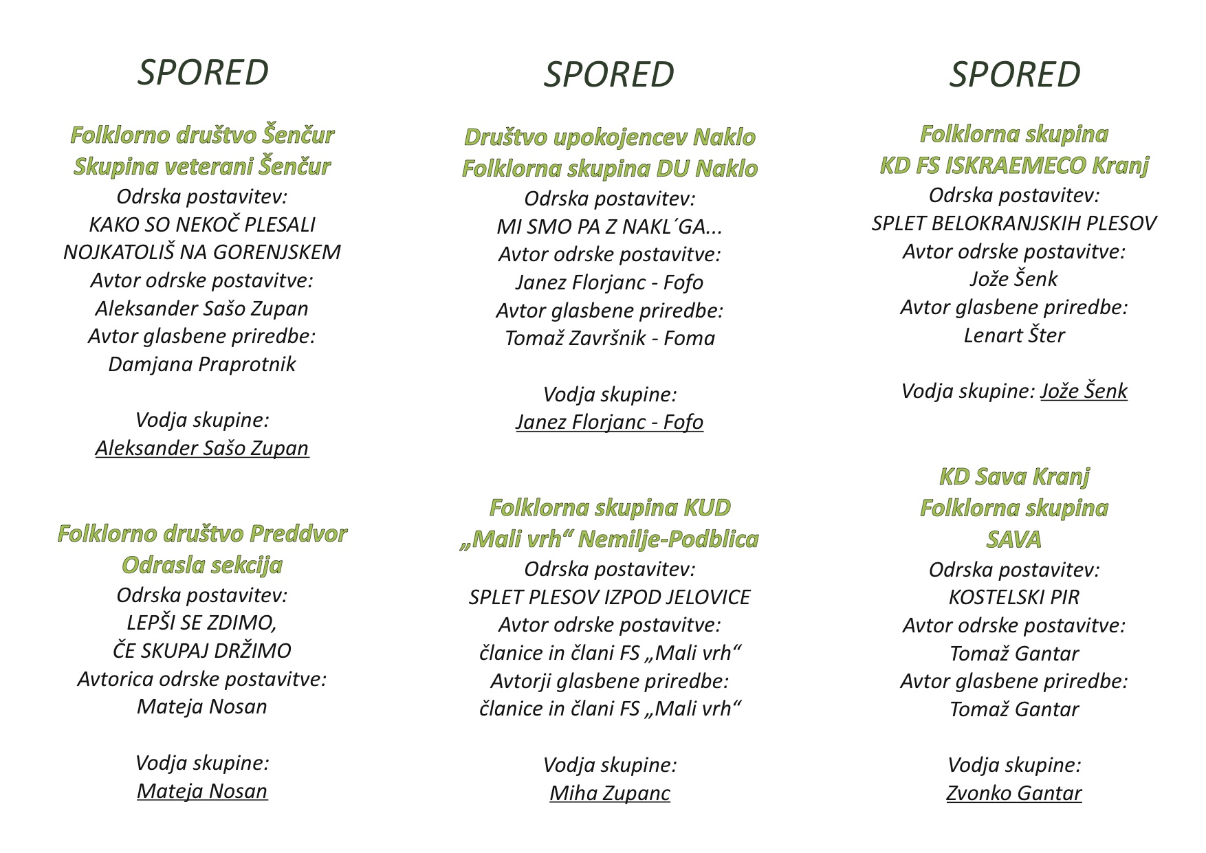 Vokalna skupina ISKRAEMECO Kranj 29. septembra 201522. september 2017 Anže Ančimer Se je prvič udeležila območnega srečanja pevcev ljudskih pesmi in godcev ljudskih viž 2015: “EN GODEC NAM GODE, EN PEVEC PA POJE”. Foto: Jure Florjančič Continue reading... vokalna skupina 2015, območno srečanje, vokalna skupina